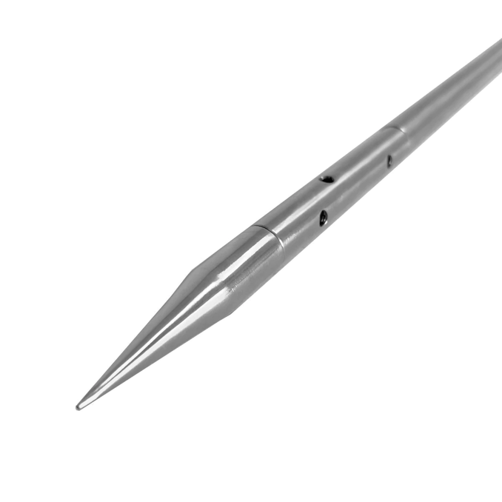 A Agulha para Eutanásia de Baleias também foi projetada pensando no fácil engate com bombas/pulverizadores manuais e elétricos com sistema de Engate Rápido, eliminando a possibilidade de vazamento.