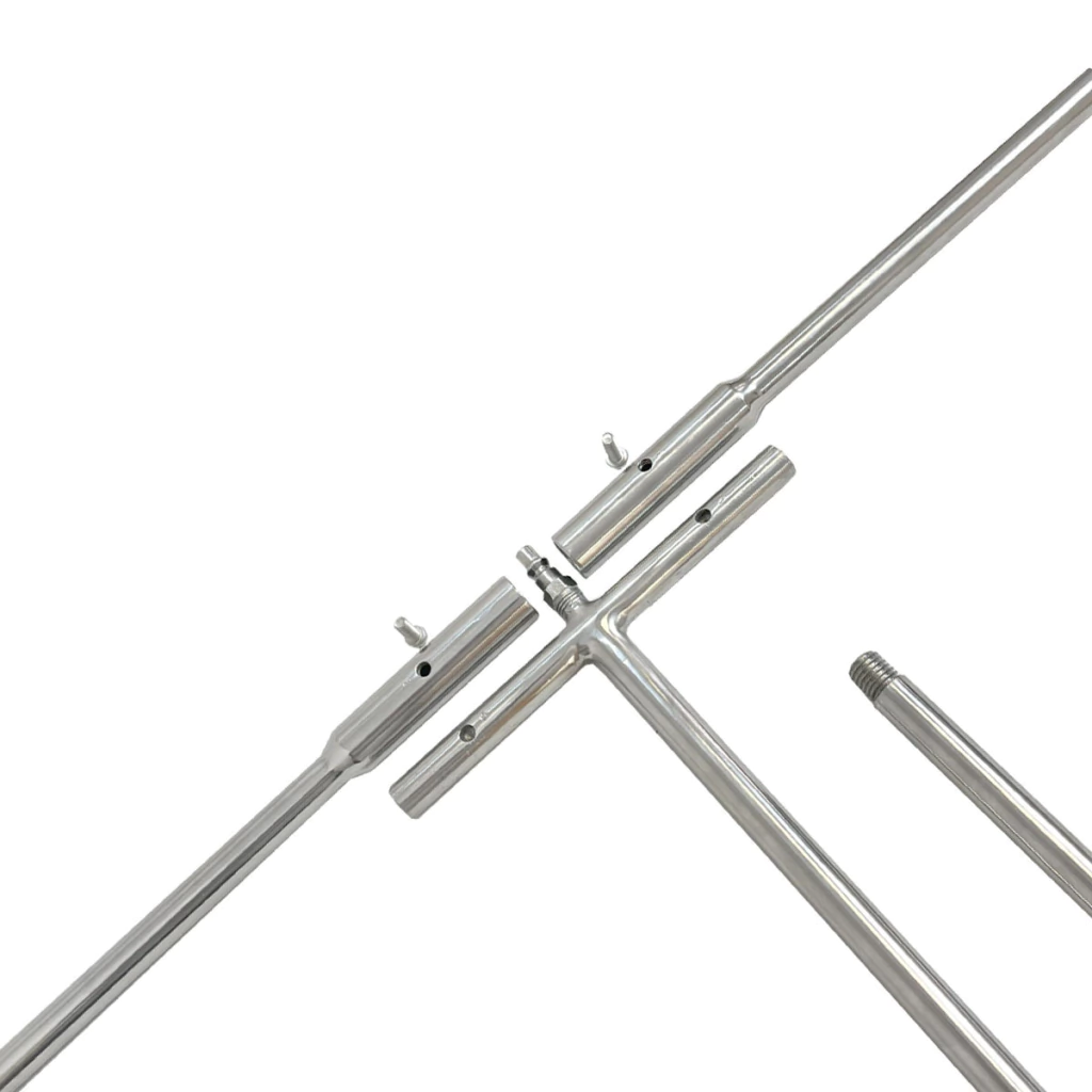 A Agulha Desmontável tem, quando inteiramente montada, 1,75m de comprimento total, mas pode ser montada sem uma das hastes, reduzindo seu tamanho consideravelmente.