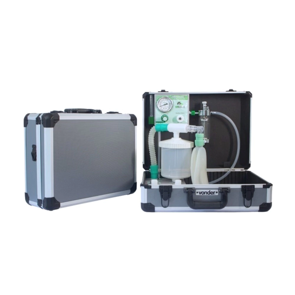 A inclusão da válvula de escape pop-off anti poluição destaca o compromisso ambiental do VETCASE VOLANTE. O produto é acompanhado por uma extensão para oxigênio, balão de reinalação de 2 litros e um jogo de traquéias 15mm x 1000mm.