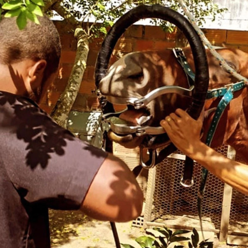 A Cabeçada Odontológica Oval foi desenvolvida para que o tratamento dentário ocorra com a maior estabilidade possível. Com o objetivo de manter a cabeça do animal imóvel e pendurada, a Cabeçada Odontológica é feita em material macio para que não irrite ou prejudique a saúde do animal e seu uso é indicado com o Abre Boca Equino com Cremalheira. A Cabeçada Odontológica deve ser suspensa por corda para manter a cabeça do animal alta. Normalmente, é indicado a ajuda de um auxiliar para tal procedimento.