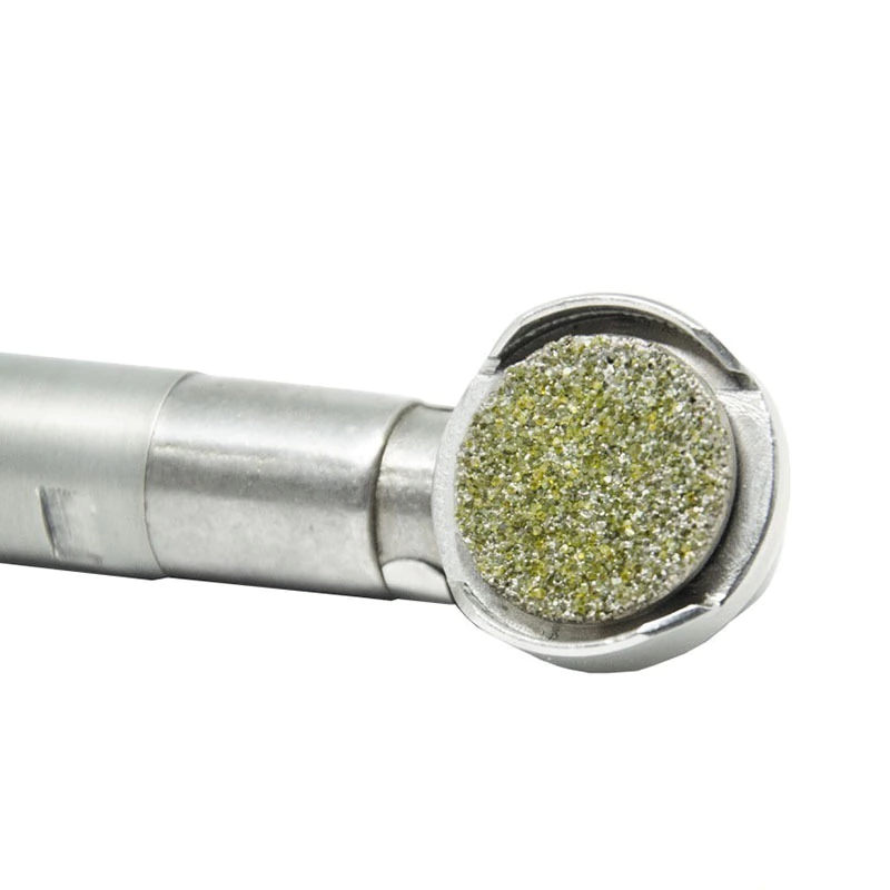 "A caneta longa com disco é a caneta ideal para trabalhar na superfície oclusal dos pré-molares e molares superiores e inferiores. Entre todas as canetas existentes esta é a que possui maior área de contato com a face oclusal do dente possibilitando ao profissional um desgaste rápido e eficiente."